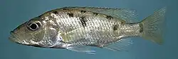 Stigmatochromis woodi is a species of cichlid endemic to Lake Malawi where it can be found hunting for prey over sandy areas. It can reach a length of 25 centimetres (9.8 in) TL. It can also be found in the aquarium trade.[2] The specific name honours Rodney C. Wood, whose collection of cichlids from Lake Malawi, which included the type of this species, was presented to the British Museum (Natural History).[3] It is the type species of the genus Stigmatochromis.[4]