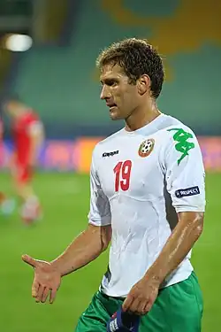 On 12 October 2006 Petrov, then captain of Bulgaria, announced his decision to retire from international football at the age of 27 as long as Hristo Stoichkov manages the Bulgaria national team.[36] However, on 20 March 2007 he made amends with Hristo Stoichkov and made himself available for selection again.[37] However, he did not recover his position as national captain because it was decided that Dimitar Berbatov would retain the captain's armband. On 14 January 2010, it was announced that Petrov had come second in Bulgaria's Player of the Year. Petrov was renamed captain of the Bulgarian side again following the retirement of Berbatov from international football in 2010. On 26 March 2011, Petrov earned his 100th cap for Bulgaria in the 0–0 home draw with Switzerland in a Euro 2012 qualifier. He received a flower bouquet from Borislav Mihaylov and was applauded by the spectators prior to the start of the match.