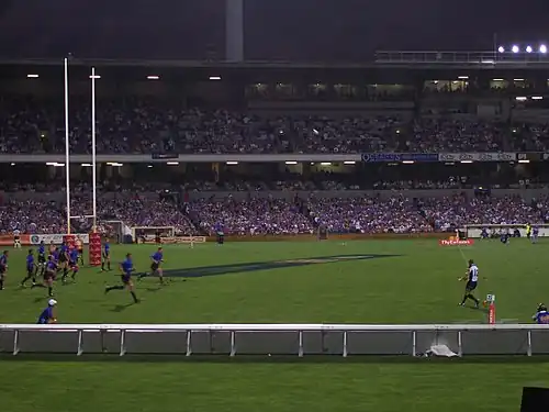 Stirling Austin Mortlock AM[1] (born 20 May 1977) is an Australian former professional rugby union player. He has scored more than 1,000 points in Super Rugby, and nearly 500 test points for the Wallabies.[2] Mortlock is a former Wallaby, Melbourne Rebels and Brumbies captain.