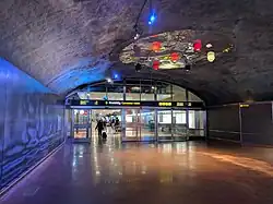 Stockholm City is a railway station in central Stockholm, Sweden. Opened on 10 July 2017, the station is located on the Stockholm City Line. It is located directly below T-Centralen (the hub of the Stockholm Metro) and is connected to Stockholm Central Station. The station serves all Stockholm Commuter Rail routes except for line 48.[2] It is the busiest mainline railway station in Sweden.