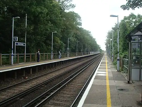 Stone Crossing railway station is located on the North Kent line, north-east of the village of Stone and east of Dartford. It was originally named Stone Crossing Halt. It is 19 miles 7 chains (30.7 km) down the line from London Charing Cross. Trains are operated by Southeastern and Thameslink.