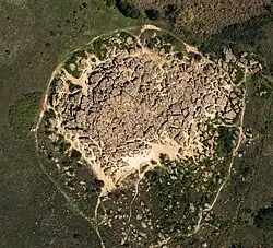 The site encompasses a group of isolated blocks of sandstone, up to twelve meters in height, scattered around an area of some 3,000 sq m. As Noghai legend has it, it resulted from a scuffle of two baghaturs who took turns throwing rocks at each other. In truth, the site had its origins in a sandbank of the Tethys Ocean. For a long time it was an island in the Molochna River, which has since been silted up and now flows a short distance to the west. It is thought to represent the only sandstone outcrop in the Azov-Kuban Depression. The shape of this sand hill is similar to that of kurgans that dot the Pontic–Caspian steppe.