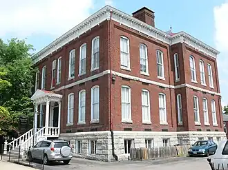 Stonewall Jackson School, also known as West End School, is a historic school building located in Richmond, Virginia. It was built in 1886–1887, is a tall two-story, brick and granite school building in the Italianate style. It features a bracketed cornice and shallow, standing seam metal, hipped roof. The building consists of identical wings facing west and south, and a connecting curved bay, which contains a double stair. Each wing has a cast-iron, Corinthian order porch, flanked by three bay classrooms.[3] The building has been converted to professional offices.
