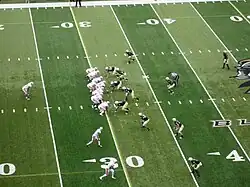 Stony Brook first fielded varsity football in the 1983 season when its athletic teams were known as the Patriots.[5] The football team transitioned into Division I in 1999 after leaving the Eastern Football Conference. In 2002, the 8,300 seat Kenneth P. LaValle Stadium opened as the new home of Seawolves football.[6] The program joined the Northeast Conference in 1999 and participated as an associate member until 2006. It transitioned to a fully funded FCS program from 2006 until 2008 providing the maximum scholarship allowance of 63. In 2008 Stony Brook joined the Big South Conference.[7] In the summer of 2012, the program announced its admission into the Colonial Athletic Association. In 2017, the stadium was expanded to add further 2,000 seats, which along with a standing capacity of at least 2,000, gives the stadium a total capacity of 12,300.[8]