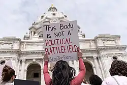 Stop the Bans was a series of rallies held in the United States on May 21, 2019, protesting abortion bans and restrictions. Supporting organizations include the American Civil Liberties Union (ACLU), NARAL Pro-Choice America, and Planned Parenthood.[1] Protesters at the Stop the Bans rallies were concerned about women's rights being eroded.[2] Demonstrators at the rallies felt that politicians should not be making medical decisions about women's bodies.[3]