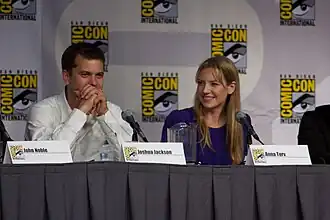 Executive producers J.H. Wyman and Jeff Pickner were both impressed with Torv's take on the role, with Wyman stating that it "just transcended all our expectations", while Pinkner noted that Nimoy himself was "the most proud and most impressed" with the outcome.[5] Actor Joshua Jackson found her performance "so creepy". He explained, "In the episodes, you see I can barely look at her. I think it ended up being a good way to play Peter’s reaction to Olivia, but it was born out of the fact that when that voice came out of her, I was like: ‘Oh, that’s just wrong!'"[7] Pinkner confirmed in an interview with TVLine that Bell's appearance would last for "a couple" episodes, and also warned that "cohabitation is not as benign as William assumes it is", a reference to problems Bell would soon have in Olivia's body.[8] The possessed state of Olivia has led viewers to refer to her as "Bellivia".[9][10]