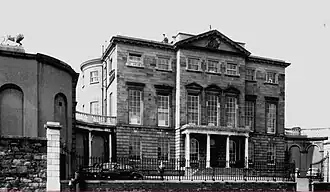 Edward Stratford of Merevale Hall settled the sum of £500 on his younger brother Robert Stratford to establish a line in Ireland.[14] Robert settled at Baltinglass Castle, and his grandson entered the peerage as Earls of Aldborough, of the Palatinate of Upper Ormond. The title was created on 9 February 1777, along with the subsidiary title Viscount Amiens, for John Stratford, 1st Viscount Aldborough.[15] He had already been created Baron Baltinglass, of Baltinglass, in the County of Wicklow,[16] on 21 May 1763, and Viscount Aldborough, of the Palatinate of Upper Ormond,[17] on 22 July 1776. These titles were also in the Peerage of Ireland. Three of his sons, the second, third and fourth Earls, all succeeded in the titles. They became extinct on the death of the latter's grandson, the sixth Earl, in 1875. Their seats were Belan House, Aldborough House, Baltinglass Castle and Stratford House. and went on to sire the Earls of Aldborough.[18]