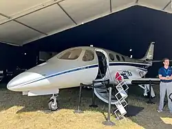 The project was unveiled on 16 July 2008, touted as an owner-flown Very Light Personal Jet.[2] A cabin mock-up was shown at AirVenture in July 2009, and at that time the company predicted the jet would sell for about US$2M. The company was seeking US$12M to build two prototypes and a further US$100M to complete certification and commence production. The company CEO, Michael Lemaire, indicated in 2009 that the aircraft will fill a performance niche, as there is no other four seat aircraft with the 714's speed and range.[3][4] The company was accepting refundable customer deposits of US$50,000 to be held in interest-bearing escrow in 2009.[5] The first deposit was made by Cascade Air Charter, of Bend, Oregon in October 2009.[6]