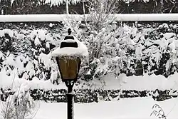 Farola fernandina is a traditional design of gas streetlight which remains popular in Spain. Essentially, it is a neoclassical French style of gas lamp dating from the late 18th century. It may be either a wall-bracket or standard lamp. The standard base is cast metal with an escutcheon bearing two intertwined letters 'F', the Royal cypher of King Ferdinand VII of Spain[21] and commemorates the date of the birth of his daughter, the Infanta Luisa Fernanda, Duchess of Montpensier.[22]