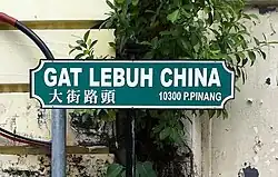 - Street Ghaut - Gat Lebuh (e.g. China Street Ghaut/Gat Lebuh China)