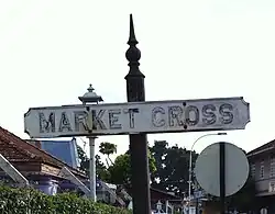 The oldest street signs in the centre of George Town are rectangular and made of painted metal plate (blue with white lettering), usually affixed to corner shop-houses at the top of the ground floor, and many can still be seen. In the suburbs, rectangular cast-iron signs with indented corners (white with black lettering and edging) in English and sometimes Jawi script, fixed at head-height to a black iron pole surmounted with a finial, could also be seen. Almost all of these have been replaced by the modern road signs.