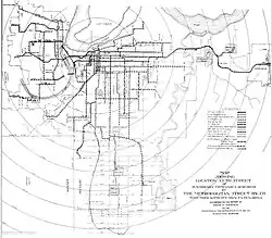 Cable cars were propelled by gripping moving underground cables, like the San Francisco cable car system.[1] The first in the city, the Kansas City Cable Railroad, opened in June 1885 after issues with mismatched track gauges.[7][8][9]