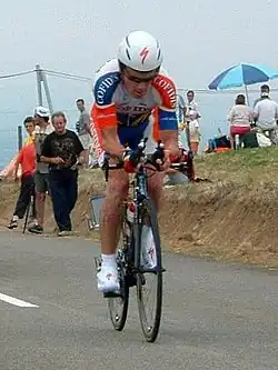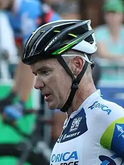 Stuart O'Grady OAM (born 6 August 1973) is a retired Australian road bicycle racer, who rode as a professional between 1995 and 2013.[2] A former track cyclist, O'Grady and Graeme Brown won a gold medal in the Men's Madison at the 2004 Summer Olympics.[3] O'Grady also won Paris–Roubaix in 2007. O'Grady competed in the Tour de France from 1997 and contended for the points classification in the Tour de France known as the green jersey, finishing second in the 1998, 1999, 2001 and 2005 races. He wore the yellow jersey of general classification leader in 1998 and 2001.