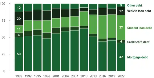 - ^ "Trends in the Distribution of Family Wealth, 1989 to 2022". Congressional Budget Office. October 2, 2024. See table in this section: Composition of Debt of Families in the Bottom 25 Percent of the Wealth Distribution.