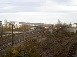 The station's signalling systems can be remotely controlled from the SpDr-L60 interlocking in Zuffenhausen, which went into operation in 1973.[4] The only rarely used freight yard has a variety of track layouts with multiple terminal tracks. An unused signal box called Stuttgart Nord R1 is the transition to the Franconia Railway. The building of the train depot still exists today and is now used as a conference centre.