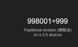 Animation of traditional division (帰除法) on a 5+2 abacus
