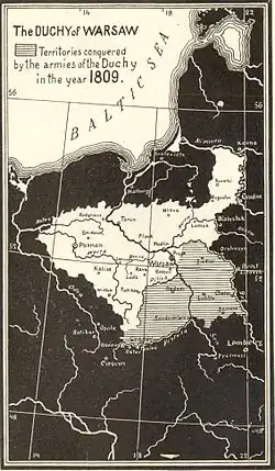 Subdivisions of the Duchy of Warsaw were based on departments that were headed by prefects. The subsidivions were based on the French model following the erection of the Duchy of Warsaw by Napoleon. The departments were in turn subdivided into traditional Polish powiats (counties). Initially six departments were created from the territory annexed from the Kingdom of Prussia. After the 1809 Polish–Austrian War and the Treaty of Schönbrunn the duchy's territory was expanded and their number increased to ten. Each department was named after its capital city.