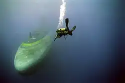 Submechanophobia (from Latin sub 'under'; and from Ancient Greek μηχανή (mechané) 'machine' and φόβος (phóbos) 'fear') is a fear of submerged man-made objects, either partially or entirely underwater.[1][2] These objects could be shipwrecks, statues, sea mines, animatronics as seen in theme parks, or old buildings, but also more mundane items such as buoys, chains, and miscellaneous debris.