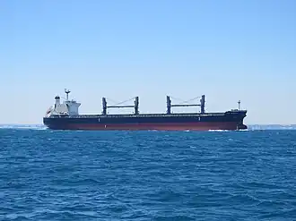 ![]() The bulk carrier New Boundary about to pass through two navigational aids in the Success Channel | |