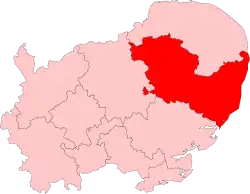 It consisted of the parliamentary constituencies of Bury St Edmunds, Central Suffolk, Ipswich, South West Norfolk, Suffolk Coastal and Waveney.[1] South West Norfolk had previously been part of the Norfolk constituency.