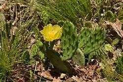 Somewhat unusually, Opuntia humifusa, Eastern prickly-pear cactus, can be found growing on ledges atop Sugarloaf Hill. The oceanic warmth brought upstream by the estuarine Hudson and the sunny, exposed rock allows this cactus to grow on the hill, and elsewhere in the Hudson Highlands.[4]