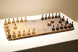 Ban-sugoroku is played in a similar way to western tables games. It has the same starting position as backgammon, but the aim and rules of play are different. For example: