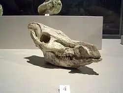 The earliest fossil suids date from the Oligocene epoch in Asia, and their descendants reached Europe during the Miocene.[1] Several fossil species are known and show adaptations to a wide range of different diets, from strict herbivory to possible carrion-eating (in Tetraconodontinae).[2]