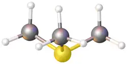 Sulfonium ions with three different substituents are chiral owing to their pyramidal structure. Unlike the isoelectronic oxonium ions (R3O+), chiral sulfonium ions are resolvable into optically stable enantiomers.[6] [Me(Et)SCH2CO2H]+ is the first chiral sulfonium cation to be resolved into enantiomers.[7] The barrier to inversion ranges from 100 to 130 kJ/mol.[3]