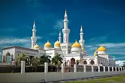 The Grand Mosque of Cotabato,[2][3] officially the Sultan Haji Hassanal Bolkiah Mosque, is situated in Cotabato City and is the second largest mosque in the Philippines with the capacity to accommodate 15,000 people.[4] The biggest mosque in the Philippines is the Marawi Grand Mosque in Marawi City which consists of three floors and a basement, and a total floor area of 9,434 square meters and has a capacity to accommodate 20,000 worshipers at any given time. [5] The Bolkiah mosque is located in Barangay Kalanganan II in Cotabato City.[6] It is also the 61st biggest mosque in the world and the third largest mosque in Southeast Asia after the Istiqlal Mosque of Indonesia and the Marawi Grand Mosque.[7]