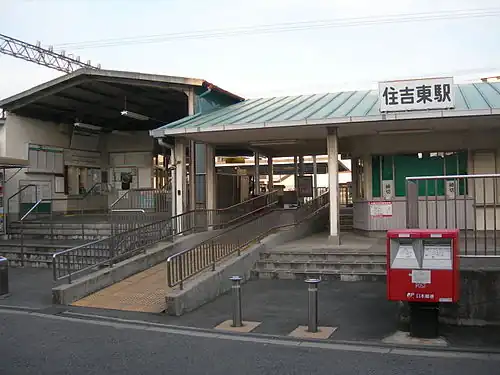 Sumiyoshihigashi Station (住吉東駅, Sumiyoshihigashi-eki) is a railway station in Sumiyoshi-ku, Osaka, Osaka Prefecture, Japan, operated by the private railway operator Nankai Electric Railway.