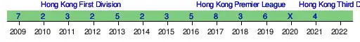 | 2015–16 | 1 | Premier League | 9 | 5 | Hong Kong Stadium | 981 | Champions | Quarter-finals | Group Stage | Champions |