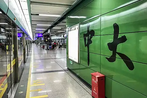 Sun Yat-sen University Station[1] (Chinese: 中大站; pinyin: Zhōngdà Zhàn; Jyutping: zung1daai6 zaam6) is a station on Line 8 of the Guangzhou Metro that started operations on 28 June 2003. It is located under Xingang Road West (新港西路) and Lixin Road (立新路) in the Haizhu District of Guangzhou. Its name is derived from the nearby Sun Yat-sen University.[2]