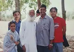 Sunderlal Bahuguna was born in the village Maroda near Tehri, Uttarakhand. He claimed in a function arranged at Kolkata, that his ancestors bearing surname Bandyopadhyaya, migrated from Bengal to Tehri, 800 years ago.[7] Early on, he fought against untouchability and later started organising hill women in his anti-liquor drive from 1965 to 1970.[8] He started social activities at the age of 13, under the guidance of Shri Dev Suman, who was a nationalist spreading a message of non-violence,[9] and he was with the Congress Party of Uttar Pradesh at the time of Independence.[10] Bahuguna also mobilised people against colonial rule before 1947.[11] He adopted Gandhian principles in his life and married his wife Vimla with the condition that they would live among rural people and establish ashram in village.[11] Inspired by Gandhi, he walked through Himalayan forests and hills, covering more than 4,700 kilometres (2920 miles) on foot and observed the damage done by mega developmental projects on the fragile ecosystem of the Himalayas and subsequent degradation of social life in villages.[11]