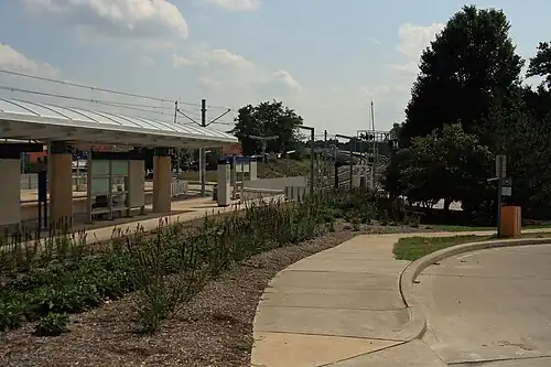 The station has a park and ride lot with 96 spaces and includes a kiss-and-ride area.