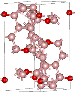 Other hard boron-rich compounds include B4C and B6O. Amorphous a-B4C has a hardness of about 50 GPa, which is in the range of superhardness.[55] It can be looked at as consisting of boron icosahedra-like crystals embedded in an amorphous medium. However, when studying the crystalline form of B4C, the hardness is only about 30 GPa. This crystalline form has the same stoichiometry as B13C3, which consists of boron icosahedra connected by boron and carbon atoms.[55] Boron suboxide (B6O) has a hardness of about 35 GPa. Its structure contains eight B12 icosahedra units, which are sitting at the vertices of a rhombohedral unit cell. There are two oxygen atoms located along the (111) rhombohedral direction.[56]