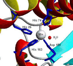 Active site of Human Manganese SOD, manganese shown in purple[9]