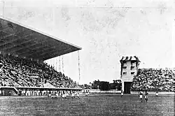 The stadium construction started in 1937 in the original area of Thai Windsor Palace that demolished in 1935.[4][5][6] The Department of Physical Education entered into a 29-year lease agreement with Chulalongkorn University. First use of the stadium happened when King Ananda Mahidol presided over in the opening ceremony of 1938 men's athletics competition, which changed the venue from Sanam Luang.[7][8]