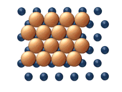 - Atomic exchange involves exchange between an adatom and an adjacent atom within the surface lattice. As shown in figure 4, after an atomic exchange event the adatom has taken the place of a surface atom and the surface atom has been displaced and has now become an adatom. This process may take place in both heterodiffusion (e.g. Pt adatoms on Ni) and self-diffusion (e.g. Pt adatoms on Pt). It is still unclear from a theoretical point of view why the atomic exchange mechanism is more predominant in some systems than in others. Current theory points towards multiple possibilities, including tensile surface stresses, surface relaxation about the adatom, and increased stability of the intermediate due to the fact that both atoms involved maintain high levels of coordination throughout the process.[14][15]