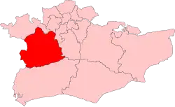 The Surrey West constituency was created for the 1984 European Parliament election.[1] It consisted of the Westminster Parliament constituencies of Chertsey and Walton, Esher, Guildford, Mole Valley, North West Surrey, South West Surrey, and Woking.[2] In 1984, the Daily Telegraph reported that the total electorate in the constituency numbered 504,923.[3]