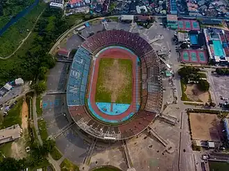 The Lagos National Stadium is a multi-purpose stadium in Surulere, Lagos State, Nigeria. It comprises an Olympic-size swimming arena and a multipurpose arena used for athletics, rugby union, basketball, volleyball, table tennis, wrestling and boxing matches. It was used mostly for football matches until 2004. It has hosted several international competitions, including the 1980 African Cup of Nations final, the 2000 African Cup of Nations final, and FIFA World Cup qualifying matches. It also served as the main stadium for the 1973 All-Africa Games.[1][2]