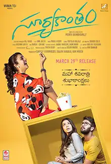 Suryakantham is a 2019 Indian Telugu-language romantic drama film starring Niharika Konidela, Rahul Vijay, and Perlene Bhesania.[3] The film is produced by American-based Yerramreddy and Yarabolu under the banner of Nirvana Cinemas.[4][2]