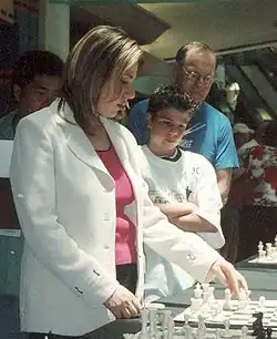 In December 2006, she announced that she would run for election to the executive board of the United States Chess Federation.[36] Polgar, Randy Bauer, and Paul Truong—three of four of Polgar's slate—were elected to four-year terms. She was elected as the first ever chairman of the USCF.[37][38][39]