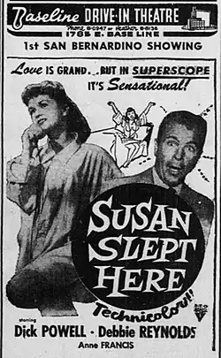 - ^ "DEBBIE REYNOLDS TO STAR IN COMEDY: Metro Performer to Appear in Independent Film Version of 'Susan Slept Here'". New York Times. July 6, 1953. p. 13.