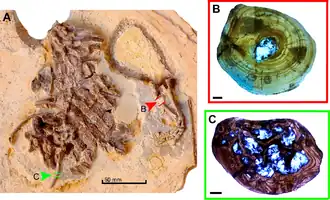 | S. anatoceps specimen (A) and cross sectioned samples (B-C) | |