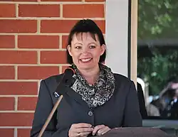 Ley joined the Liberal Party's Tallangatta branch in 1994.[8] She was elected to the House of Representatives at the 2001 election, winning the New South Wales seat of Farrer for the Liberal Party following the retirement of former National Party leader and deputy prime minister Tim Fischer, beating the Nationals candidate by 206 votes. At the time of her election she was living across the border in Old Tallangatta, Victoria, and had recently lost Liberal preselection for the Victorian seat of Indi to Sophie Mirabella. She campaigned in "a large caravan, brightly painted in Liberal blue".[17]