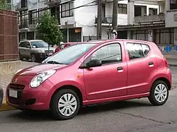 The Suzuki Celerio is a hatchback city car produced by the Japanese manufacturer Suzuki since 2008. Originally a rebadged Alto/A-Star city car for some markets, the Celerio was made as a global nameplate and a standalone model replacing the A-Star in 2014. Suzuki unveiled the second-generation Celerio at the Auto Expo 2014 in India,[1] after being previewed as the A:Wind concept model at the Thailand International Motor Expo in November 2013.[2][3] The third-generation model was unveiled in November 2021.[4] In 2023, the third-generation model was also marketed by Toyota in African markets as the Toyota Vitz.