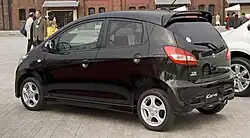 In October 2007 the Cervo received the Japanese Good Design Award, and the SR version was introduced. This had a new, 64 hp direct injection turbo engine and a Jatco-made seven-step CVT transmission, the first time such a combination was available in a Japanese car.[26] It had front-wheel drive and achieved 23.0 km/L (54 mpg) fuel consumption on the test cycle.[27] The Cervo also received minor updates across the line, with liquid seal engine mounts and suspension changes. In May 2008 the range received more minor updates, with new colors being added and a new limited edition model, the G Limited II, which featured alcantara interior and a sporty exterior. Other models received new aero parts and other equipment, gas-discharge headlights were now available on the SR.[27]