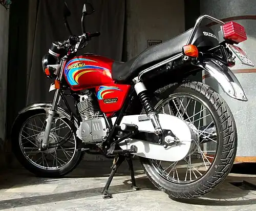 The Suzuki GS series was Suzuki Motor Corporation's first full range of 4-stroke powered road motorcycles, having previously almost exclusively manufactured 2-stroke machines. Suzuki had produced the 4-stroke Colleda COX 125cc and 93cc 4-stroke single-cylinder machines in 1955[1] however the rest of Suzuki's production from 1952 to 1976 had been increasingly sophisticated two-stroke road machines, whose ultimate expression was the 750cc 3-cylinder water-cooled GT750.