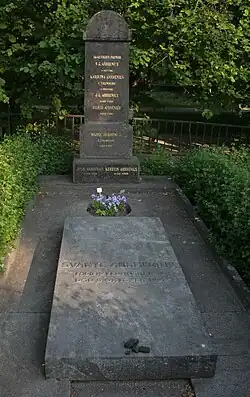 He was a board member for the Swedish Society for Racial Hygiene (founded 1909), which endorsed mendelism at the time, and contributed to the topic of contraceptives around 1910. However, until 1938 information and sale of contraceptives was prohibited in the Kingdom of Sweden. Gordon Stein wrote that Svante Arrhenius was an atheist.[26][27] In his last years he wrote both textbooks and popular books, trying to emphasize the need for further work on the topics he discussed. In September 1927, he came down with an attack of acute intestinal catarrh and died on 2 October. He was buried in Uppsala.