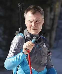 Sven Fischer (born 16 April 1971) is a German former biathlete. He trained with the WSV Oberhof 05 club, and was coached by Frank Ullrich and Fritz Fischer (national coaches) and Klaus Siebert (club coach). After the 2006/07 biathlon season, he retired.[2]